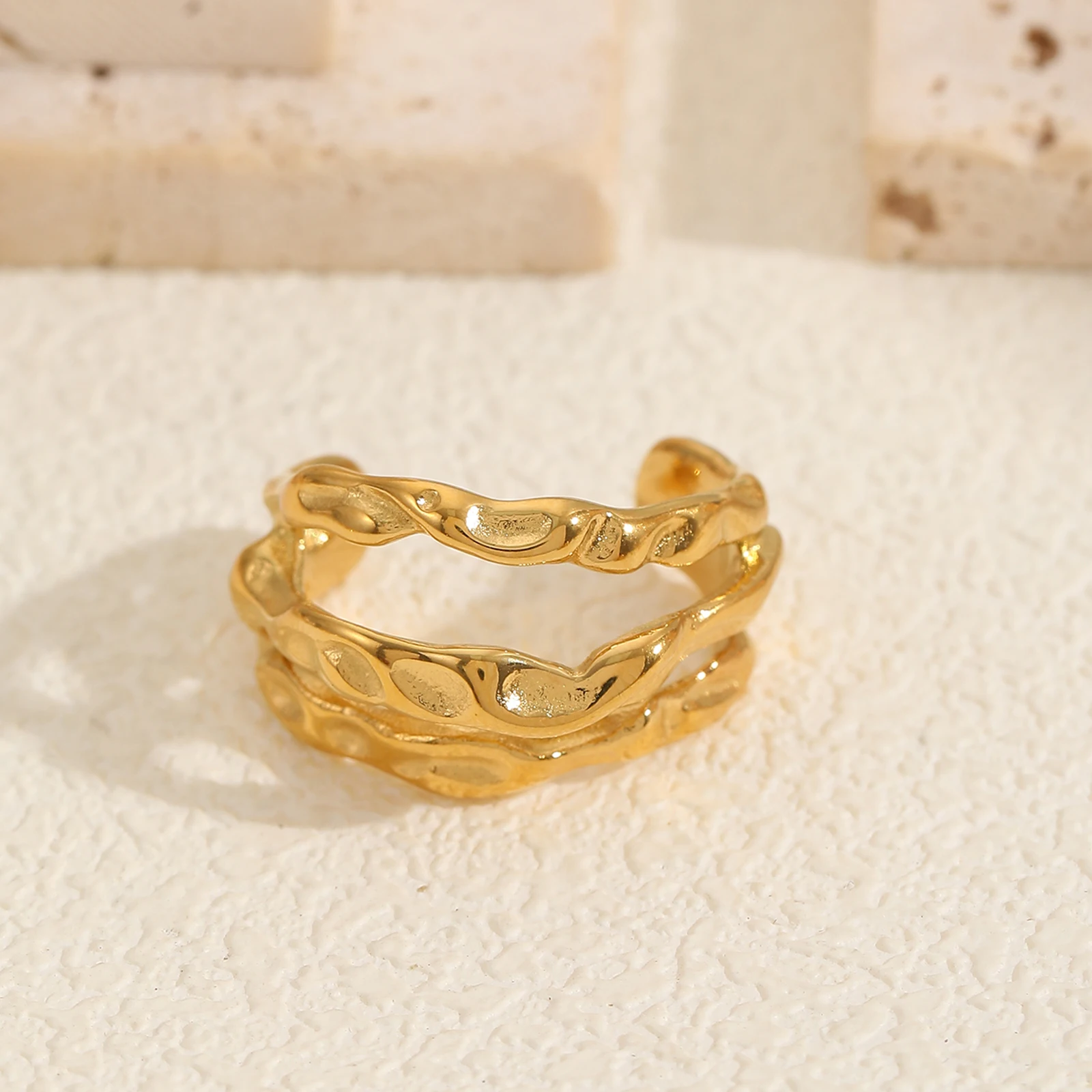 Personality Multi Layers Opening Adjustable Gold Plated Layer Ring for Women Stainless Steel Ring